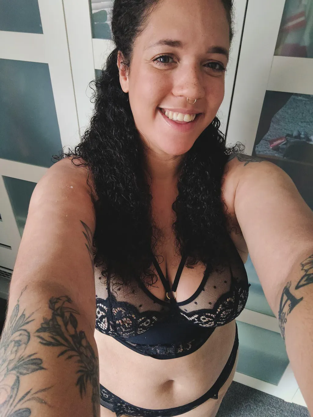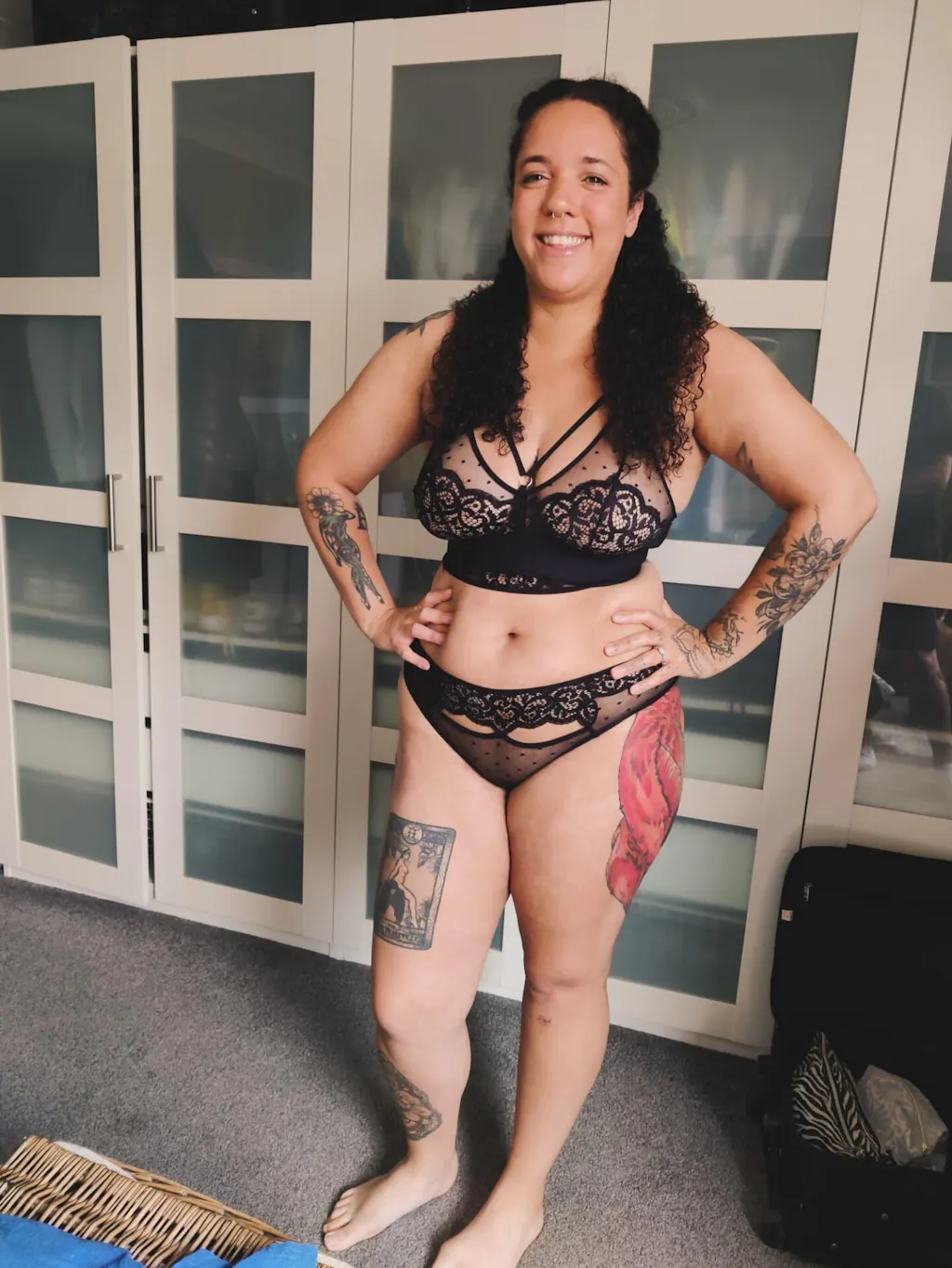 This one has a big wow factor. The lace and spotty netting is so pretty, coverage is perfect, the strappy top is sexy, and the deep band is supportive. I could wear this one daily.